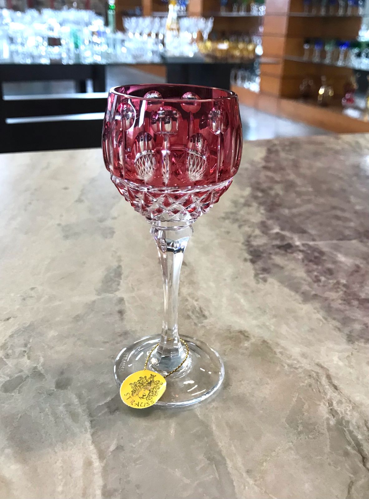 JOGO TAÇAS LICOR DE CRISTAL STRAUSS - 24%PbO - CRISTALLERIE STRAUSS - COR RUBI - FEITO À MÃO