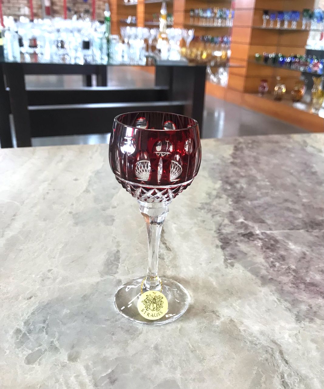 JOGO TAÇAS LICOR DE CRISTAL STRAUSS - 24%PbO - CRISTALLERIE STRAUSS - COR VERMELHO - FEITO À MÃO